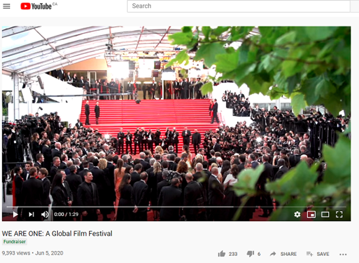 We Are One: A Global Film Festival (2020), screen capture of festival’s YouTube channel, fair use.