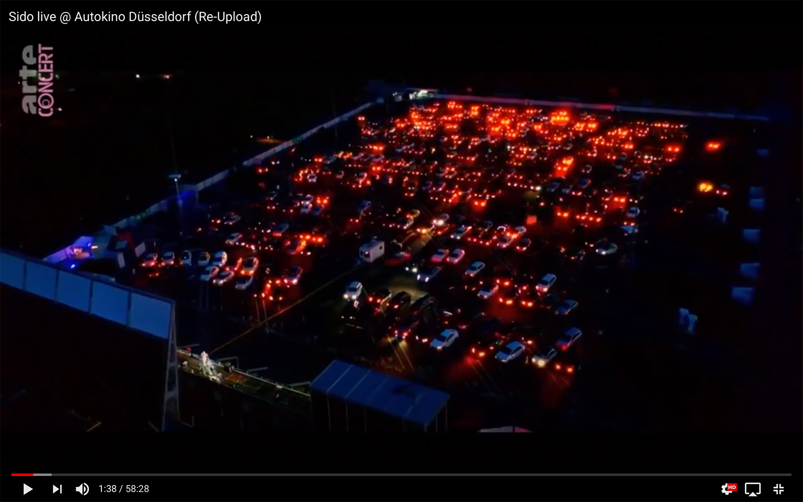 Wer das Sido-Konzert am 25. April 2020 in Düsseldorf verfolgt hat, dem fiel auf, dass eine oftmals totgesagte Technologie immer noch sehr lebendig ist: das Automobil. Etwa fünfhundert davon standen mit Konzertbesucher_innen darin vor der Bühne, blinkten und hupten. Es ist von Autokonzerten die Rede.