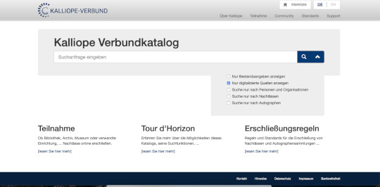 Viele Medienschaffende, von Influencer_innen bis Wissenschaftler_innen, greifen nun auf Material zurück, das digital zugänglich oder lokal, also an den jeweiligen Aufenthaltsorten, auf Festplatten, in Wohnzimmerregalen oder Dachbodenkisten vorhanden ist. Die Lieferketten des konsumierbaren Inhalts, von Urlaubsfotos bis zum Digitalisat historischer Schriftstücke, scheinen sichergestellt, denn die persönlichsten (etwa in Form von Privatsammlungen) und öffentlichsten Archive (z.B. digitalisierte Nachlässe oder offene Forschungsdatenbanken) bleiben geöffnet, was letztlich bedeutet, dass zwei Varianten von Archivkonstellationen auch im Lockdown konsultiert werden können. Die Suchmaske des Kalliope-Verbundkatalogs für Archiv- und archivähnliche Bestände, bietet die Möglichkeit an, nur bereits digitalisierte Bestände darzustellen.
