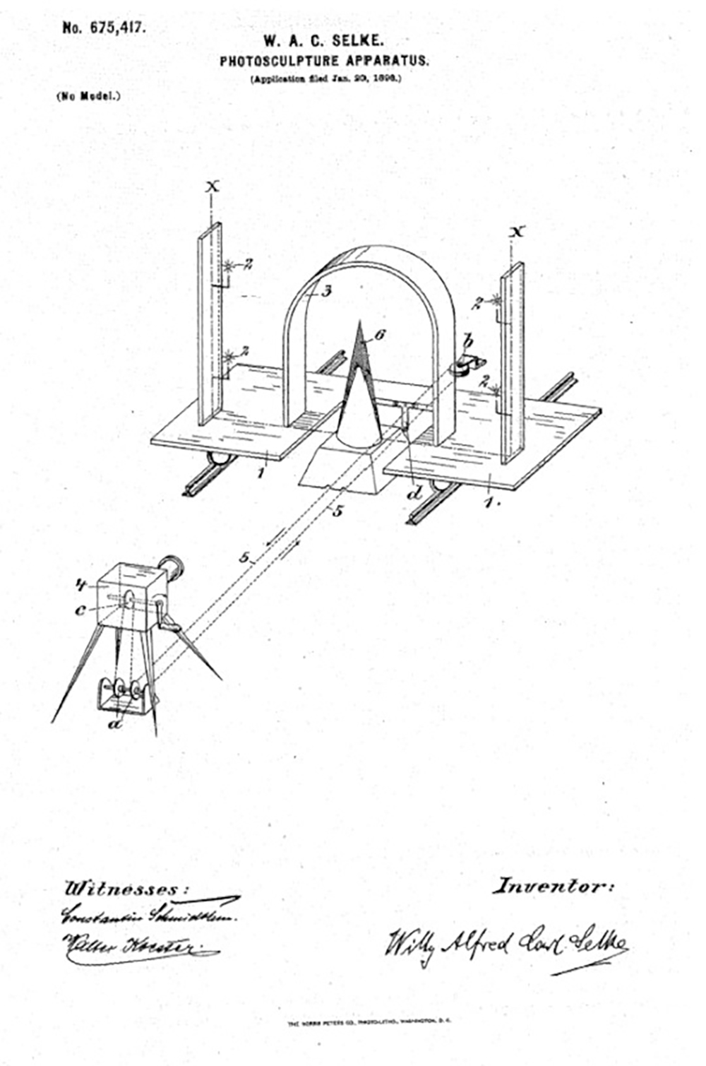 Photosculpture Apparatus. US Patent 675417, filed January 20, 1898.